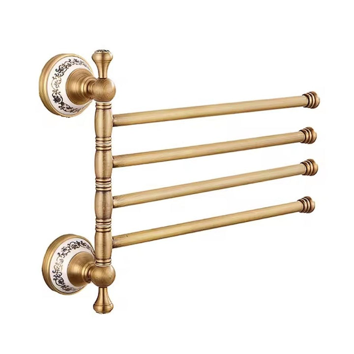 Le style en laiton antique de ce porte-serviettes apporte une richesse visuelle à n'importe quelle salle de bain. Ce matériau robuste offre une protection anti-corrosion, garantissant une durabilité exceptionnelle même dans les environnements humides. Les quatre bras tournants facilitent l'accès et optimisent le séchage de vos linges de bain favoris.